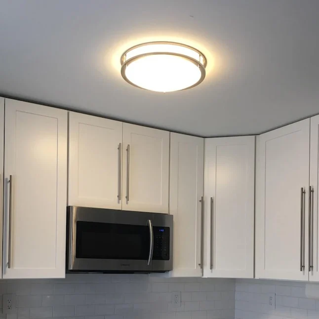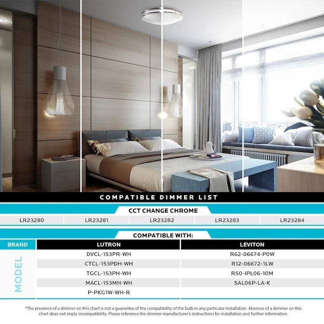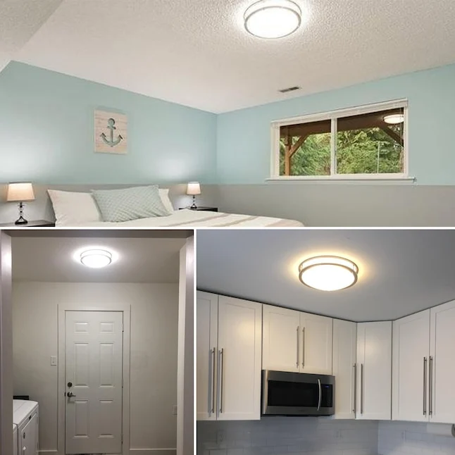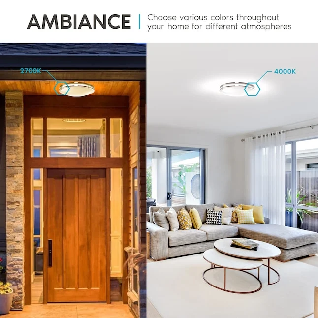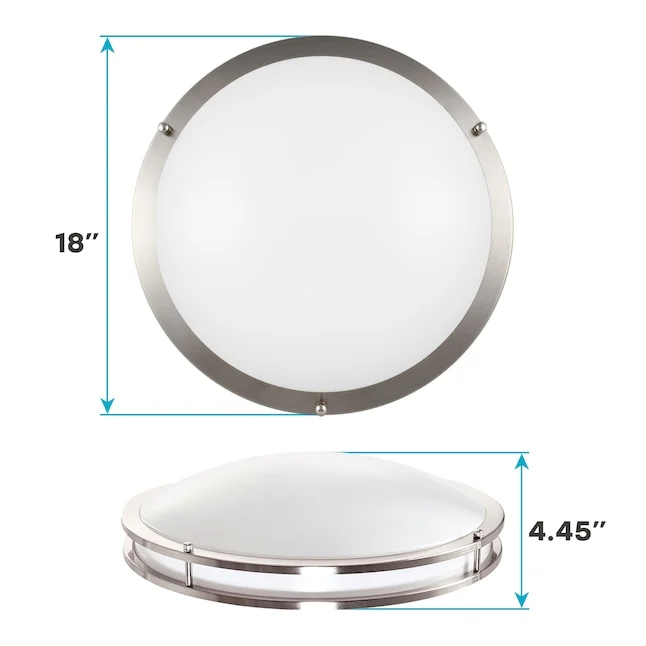 With its durable brushed chrome trim and ENERGY STAR certification, this ceiling light offers energy efficiency, reliable performance, and long-lasting illumination. The damp-rated design makes it suitable for both indoor and covered outdoor use, while the smooth dimming capability lets you customize brightness from 100% down to 10% for a comfortable atmosphere.